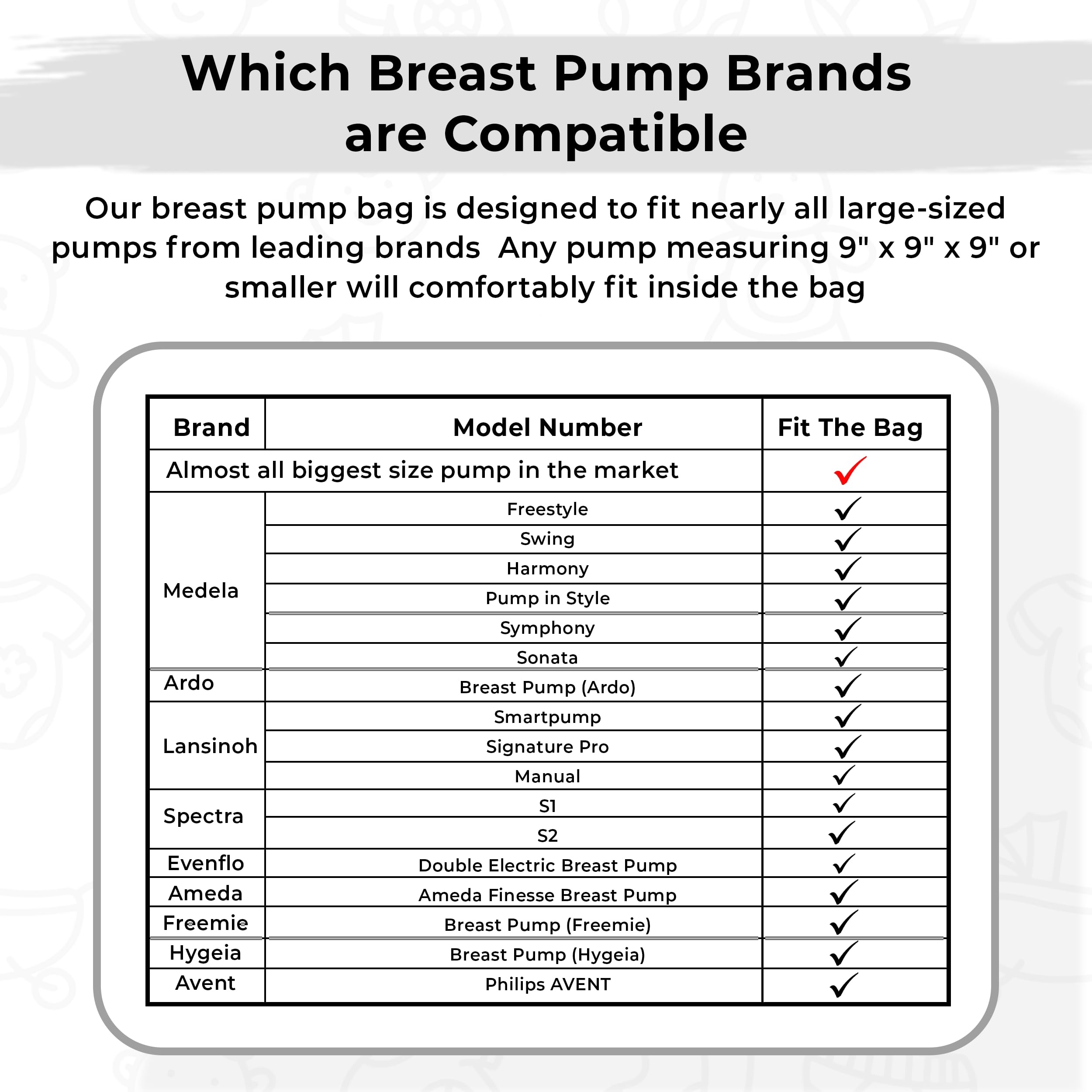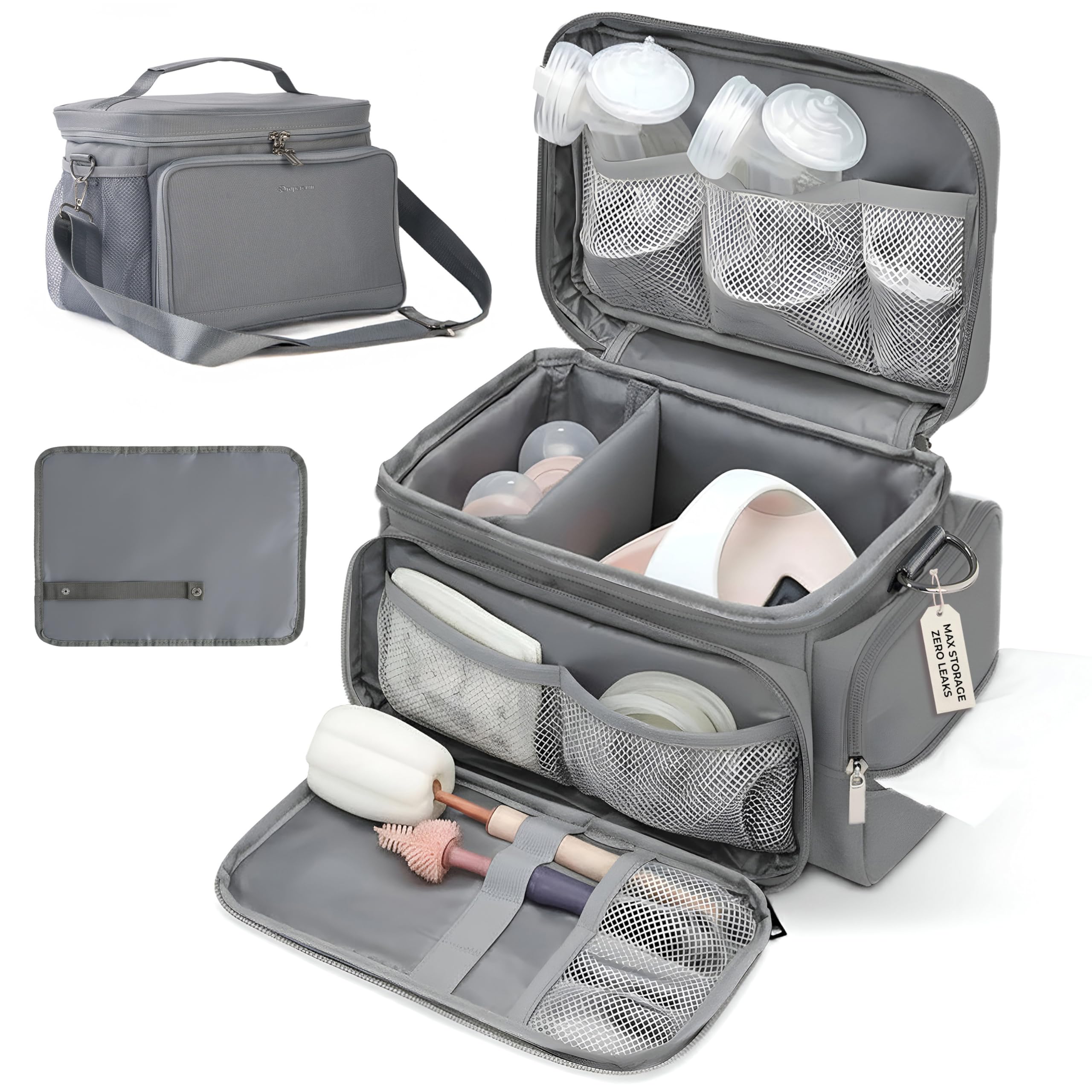 - ✨【𝐋𝐀𝐑𝐆𝐄 𝐂𝐀𝐏𝐀𝐂𝐈𝐓𝐘 & 𝐔𝐍𝐈𝐕𝐄𝐑𝐒𝐀𝐋】: The breast pump bag measures 9 x 8.8 x 15 inches and features multiple independent compartments and mesh pockets to neatly organize breast pump accessories, keys, snacks, and other items while keeping everything clean and hygienic. The front mesh pocket includes an elastic strap for storing bottle brushes, milk storage bags, and other pumping accessories. The side tissue pocket design allows for quick access during busy moments