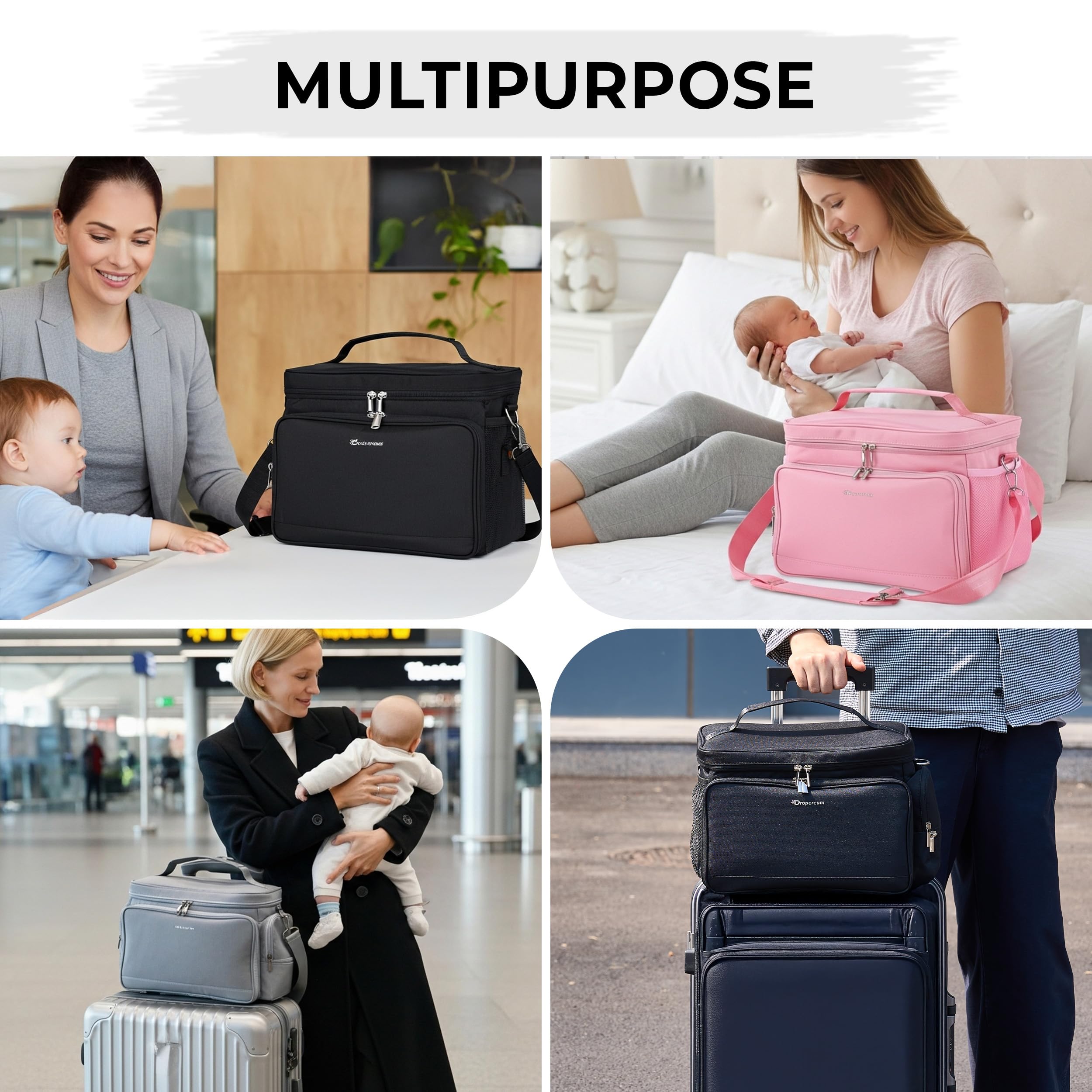 - ✨【𝐌𝐔𝐋𝐓𝐈 𝐔𝐒𝐄𝐒】: Breast Pump Bag is Suitable for most wearable breast pumps. The breast pump travel bag can also be used as an everyday backpack to store personal items such as iPad, mobile phone and wallet. Breast Pump Bag can be used as breastmilk cooler bag, picnic bag, or wine carrier, which is ideal for work, picnic, car trip, camping, or pumping moms.