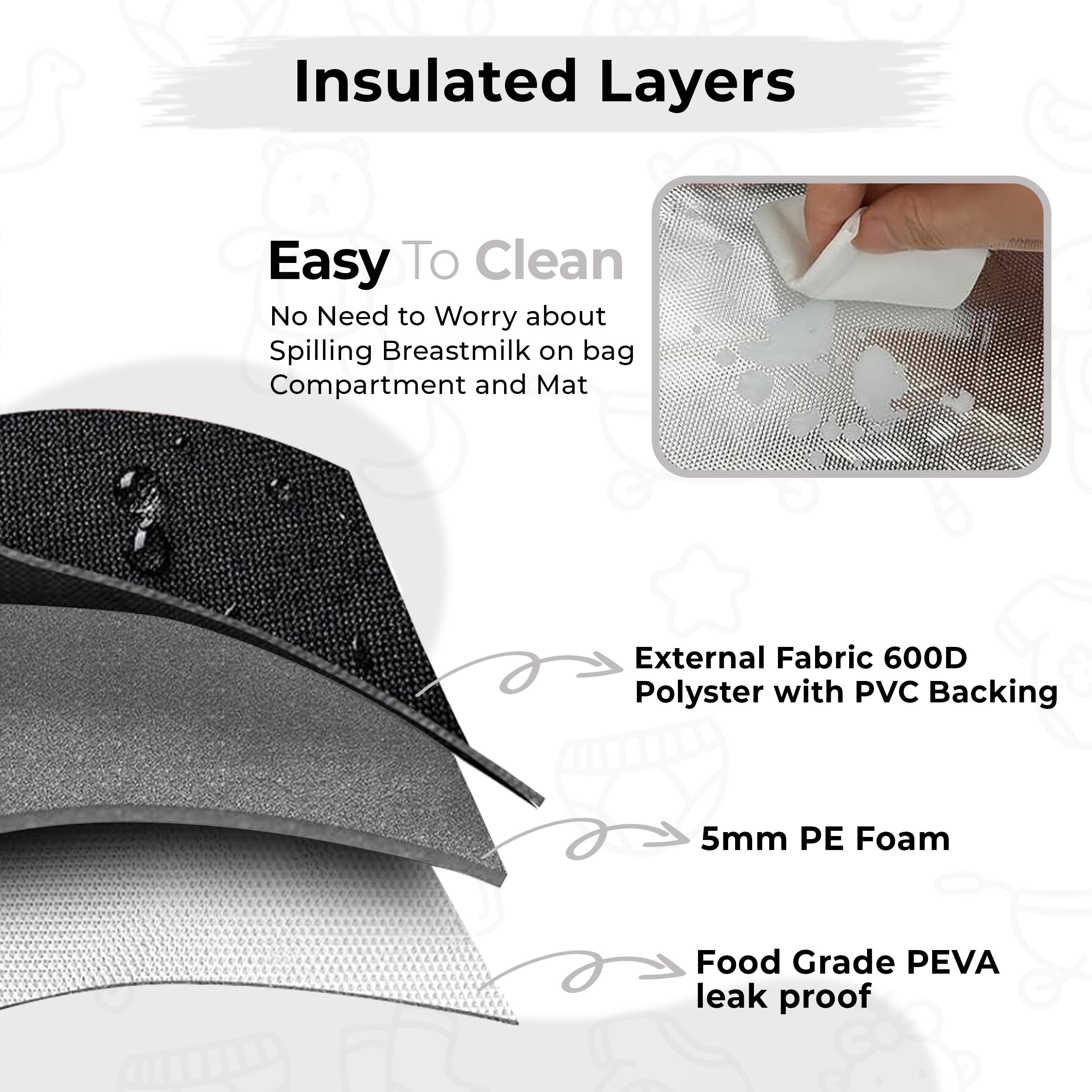 - ✨【𝐖𝐀𝐓𝐄𝐑𝐏𝐑𝐎𝐎𝐅 𝐀𝐍𝐃 𝐇𝐄𝐀𝐓 𝐈𝐍𝐒𝐔𝐋𝐀𝐓𝐈𝐍𝐆 𝐌𝐀𝐓𝐄𝐑𝐈𝐀𝐋】: The breast pump bag is made of high-quality polyester fabric, which is wear-resistant and durable. The inner lining is made of thick aluminum foil lining to keep your bottle/milk bags at the optimal temperature and is easy to clean. The insulation effect can be 2 time when used in conjunction with hot or cold ice packs.